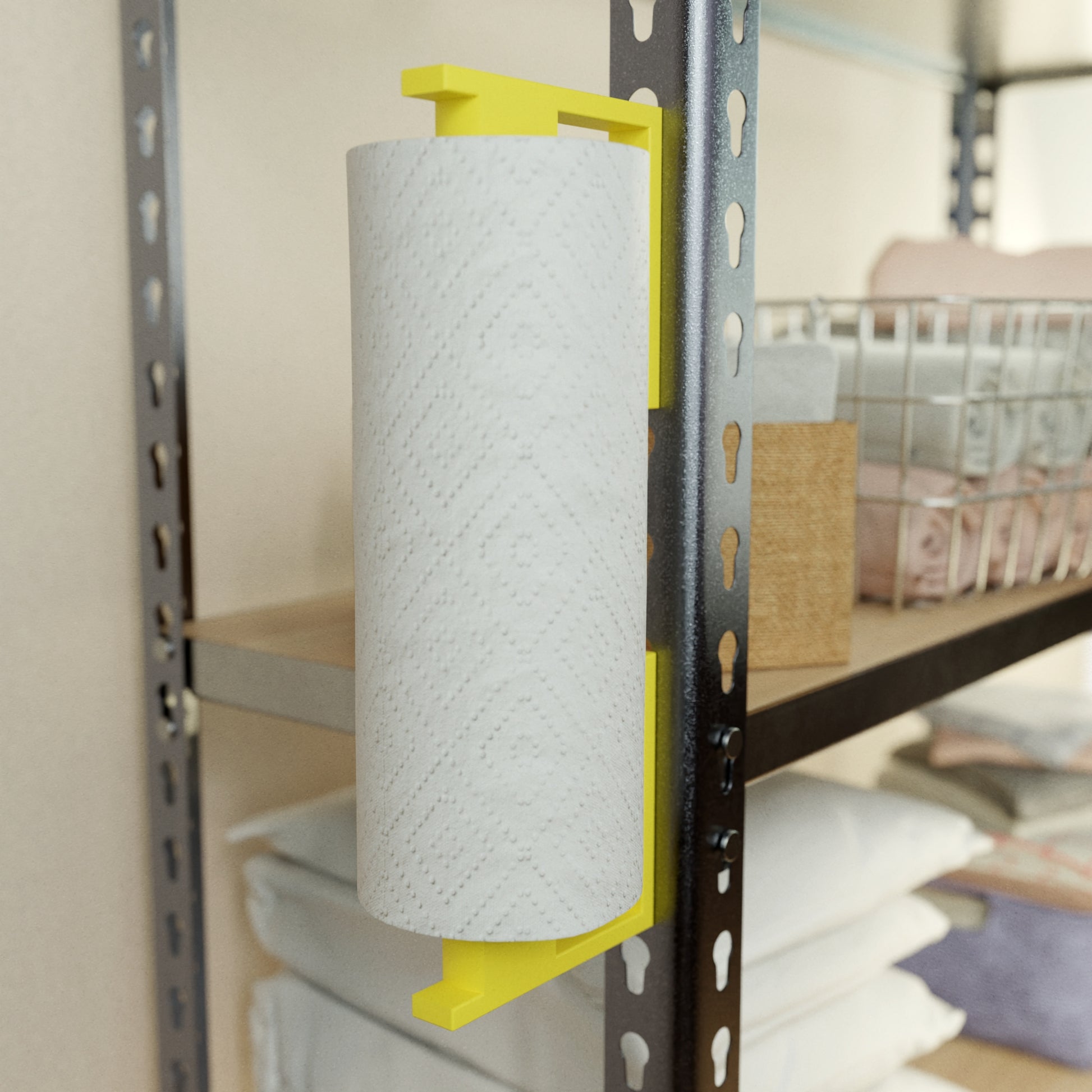 Shop towel and paper towel roll holder.